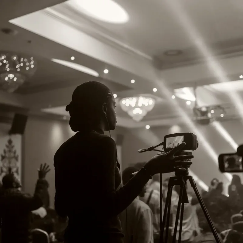 Technology and setup are adapted to the event format, number of participants, and platform.