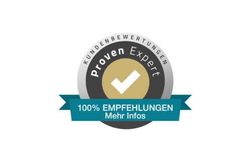 Wir lieben, was wir tun – und wir hören nicht auf, bis unsere Kunden begeistert sind. Umso mehr freuen wir uns über das Siegel „Von Kunden empfohlen“ von ProvenExpert. Es steht für außergewöhnliche Kundenzufriedenheit, exzellente Bewertungen und eine hohe Weiterempfehlungsrate.